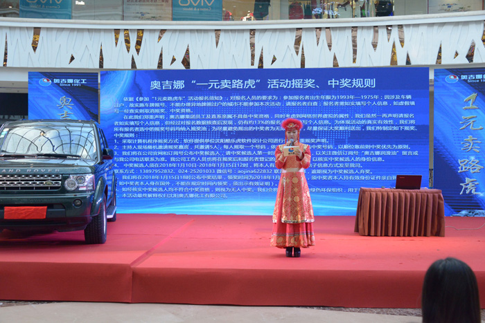 2018年1月9日上午,奧吉娜“一元賣路虎”搖獎(jiǎng)活動(dòng)在遼寧沈陽北一路萬達(dá)廣場隆重舉行。因公證機(jī)構(gòu)不進(jìn)行企業(yè)性質(zhì)活動(dòng)的公證,奧吉娜特請來多家權(quán)威媒體現(xiàn)場見證。搖獎(jiǎng)本著公開公平公正原則進(jìn)行,現(xiàn)場搖獎(jiǎng)程序設(shè)計(jì)第三方服務(wù)公司對軟件設(shè)計(jì)的公平公正進(jìn)行了鄭重聲明,主持人也多次宣讀搖獎(jiǎng)、中獎(jiǎng)規(guī)則。