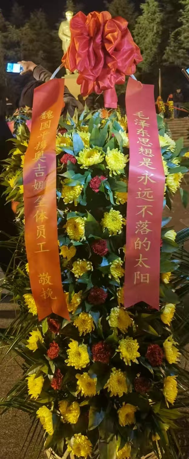 奧吉娜集團(tuán)總裁魏國(guó)平博士特選派員工赴韶山?jīng)_,代表奧吉娜集團(tuán)向紀(jì)念毛澤東銅像敬獻(xiàn)花籃祭拜偉人,表達(dá)奧吉娜人對(duì)這位偉人最崇高的敬意和最深切的懷念。