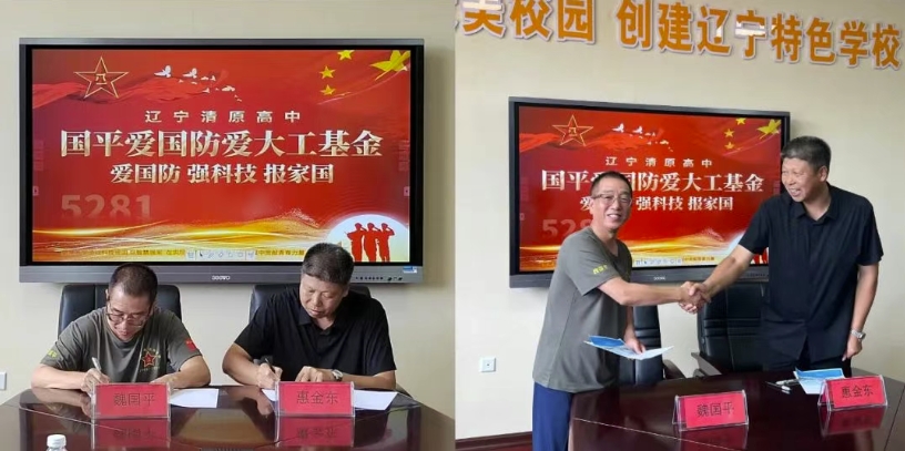 2025年8月11日上午,“國平愛國防愛大工基金”在遼寧清原縣高中簽字設(shè)立。基金發(fā)起人魏國平博士,出身軍人家庭,成長于清原北溝軍營,亦是該校優(yōu)秀校友。此次,他懷著對故土、母校的感恩及對國防事業(yè)的熱忱,回到母校見證基金設(shè)立。